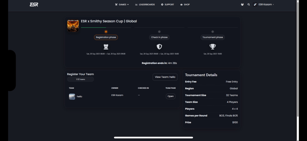 - Structured competition formats: ladders, leagues, playoff brackets